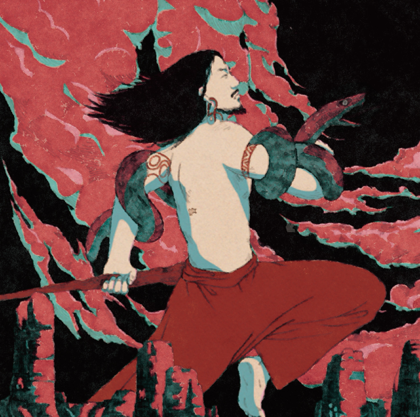 日本と中国の神話を表現するイラストレーション